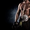 کاغذ دیواری پوستر بدنساز عضله دار با وزنه در باشگاه بدنسازی